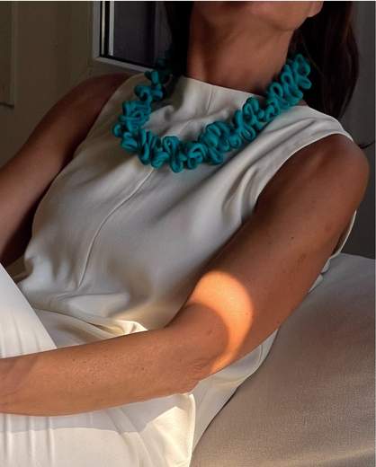 Fili di caucciù opaco o metallizzato in fluido movimento fermati da piccoli cilindri: collana che valorizza anche il più semplice vestitoCollana composta da morbido caucciù in colore opaco o metallizzato