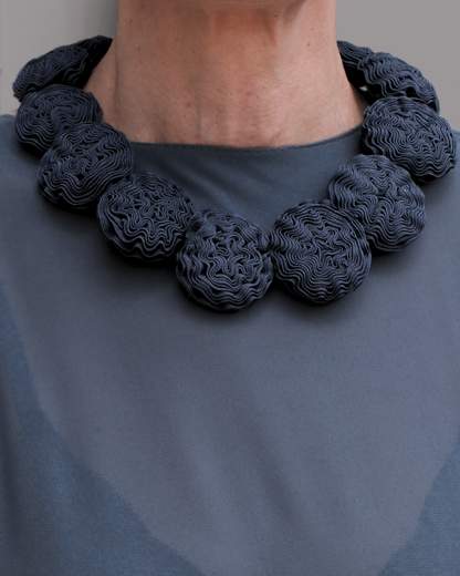 La collana Rosae è un capolavoro di design contemporaneo che cattura lo sguardo e incanta i sensi. Realizzata a mano con maestria, questa creazione unica celebra la meraviglia del tessuto elastico avvolto su se stesso, dando vita a una forma morbida e sensuale che ricorda una rosa in piena fioritura.La chiusura magnetica in resina aggiunge un tocco di raffinatezza e praticità, rendendo Rosae un gioiello versatile e perfetto per ogni occasione. Indossala per illuminare un look casual con un jeans e una t-shirt, oppure per aggiungere un tocco di originalità a un abito da sera. Lasciati conquistare dalla bellezza senza tempo di Rosae e porta un pezzo d'arte sempre con te.