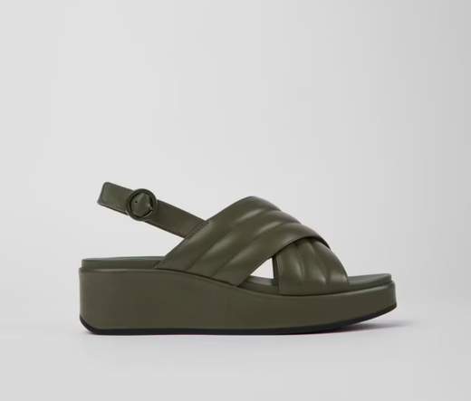 Sandalo da donna in pelle verde con plantare non estraibile in PU e suola in PU. I nostri sandali da donna Misia con suola piatta sono un modello a zeppa ammortizzata per slanciare senza sacrificare stabilità, con una silhouette sofisticata rivestita in morbida ed elegante pelle monocromatica.Codice
