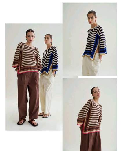 Maglia traforata con gioco di righe manica lunga 100% cotoneCodice