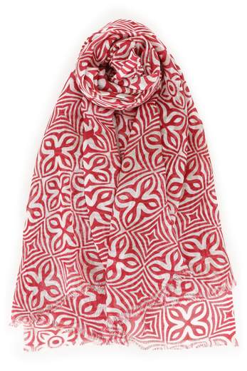 Sciarpa in modal stampato, sfrangiata su due lati. Composizione: 100% modal. Provenienza: India. Lavare separatamente in acqua fredda.Codice
