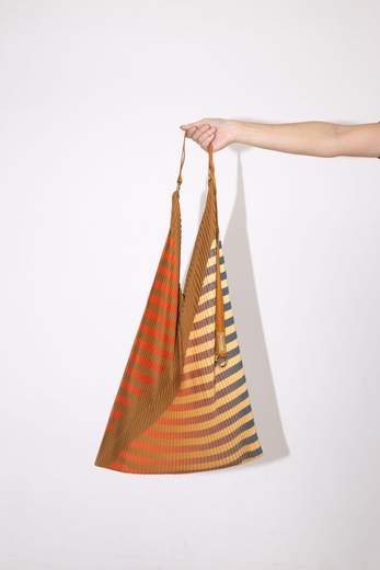 Il corpo della borsa è realizzato in un raffinato tessuto effetto seta, ottenuto interamente da poliestere riciclato. Lo stesso materiale riveste anche l’interno, garantendo uniformità e qualità. Il manico è impreziosito da un anello moschettone dorato: un dettaglio funzionale che permette di agganciare chiavi o una pochette, mantenendole al sicuro all’interno della borsa.Morbide, leggere e al tempo stesso capienti, le borse plissettate Multitudes si adattano a molteplici occasioni, accompagnandoti con eleganza e praticità nella vita di tutti i giorni.