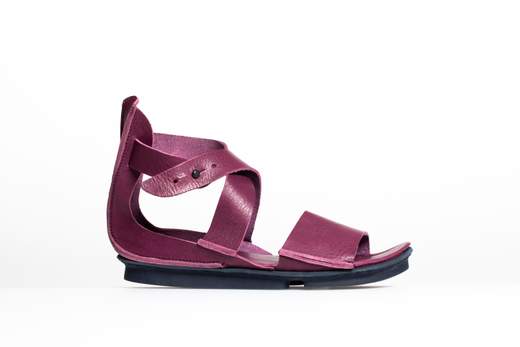 sandalo basso in pelle morbida con chiusura all altezza della caviglia con cinturino e suola in gomma concava.color lila